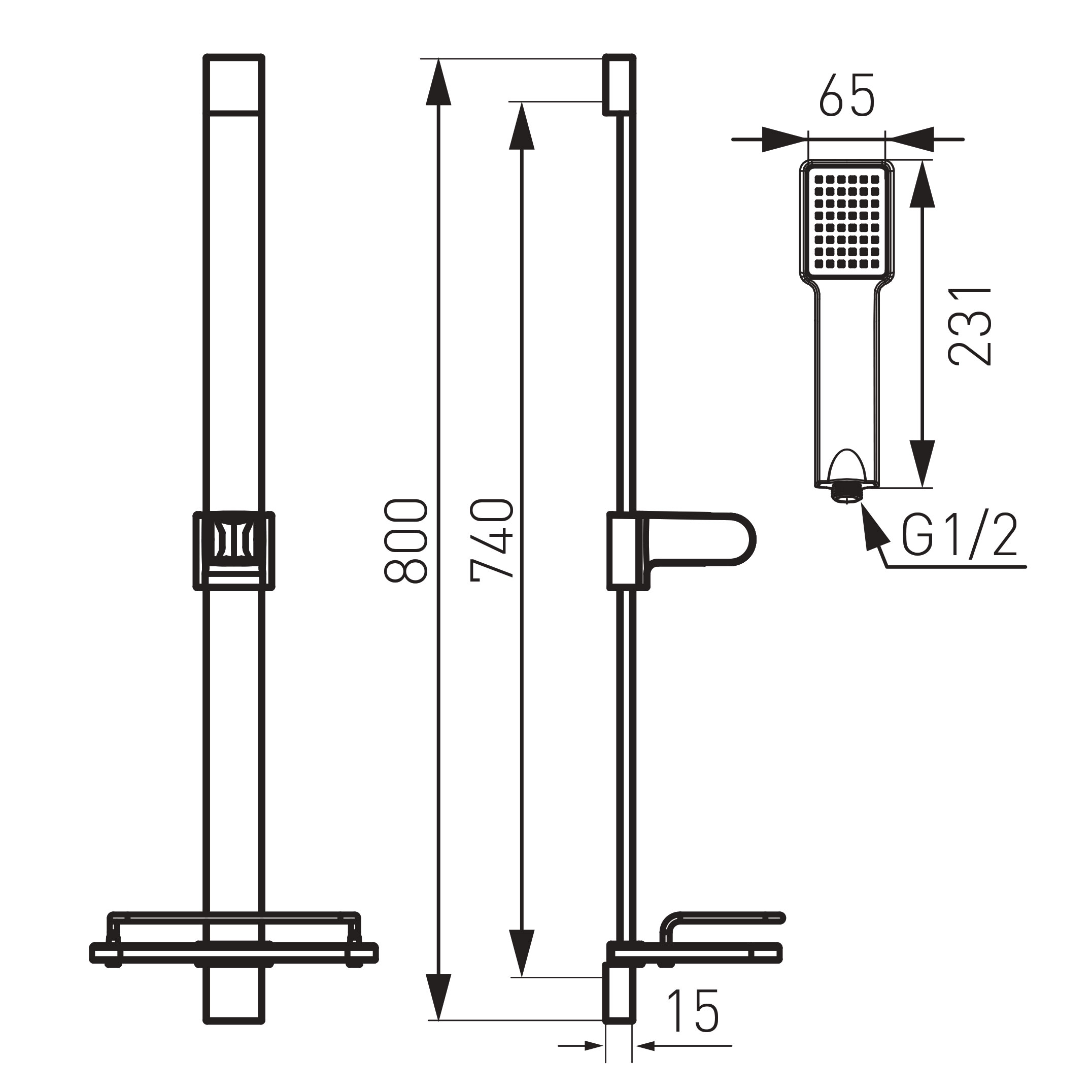 Zestaw natryskowy z modną 1-funkcyjną, prostokątną rączka natryskowa. W komplecie znajdziemy praktyczną półkę prysznicową na kosmetyki, estetyczny prostokątny drążek oraz trwały wąż prysznicowy w oplocie z metalu. Produkt oszczędnościowy, spełniający wymogi LEED-BREEAM.