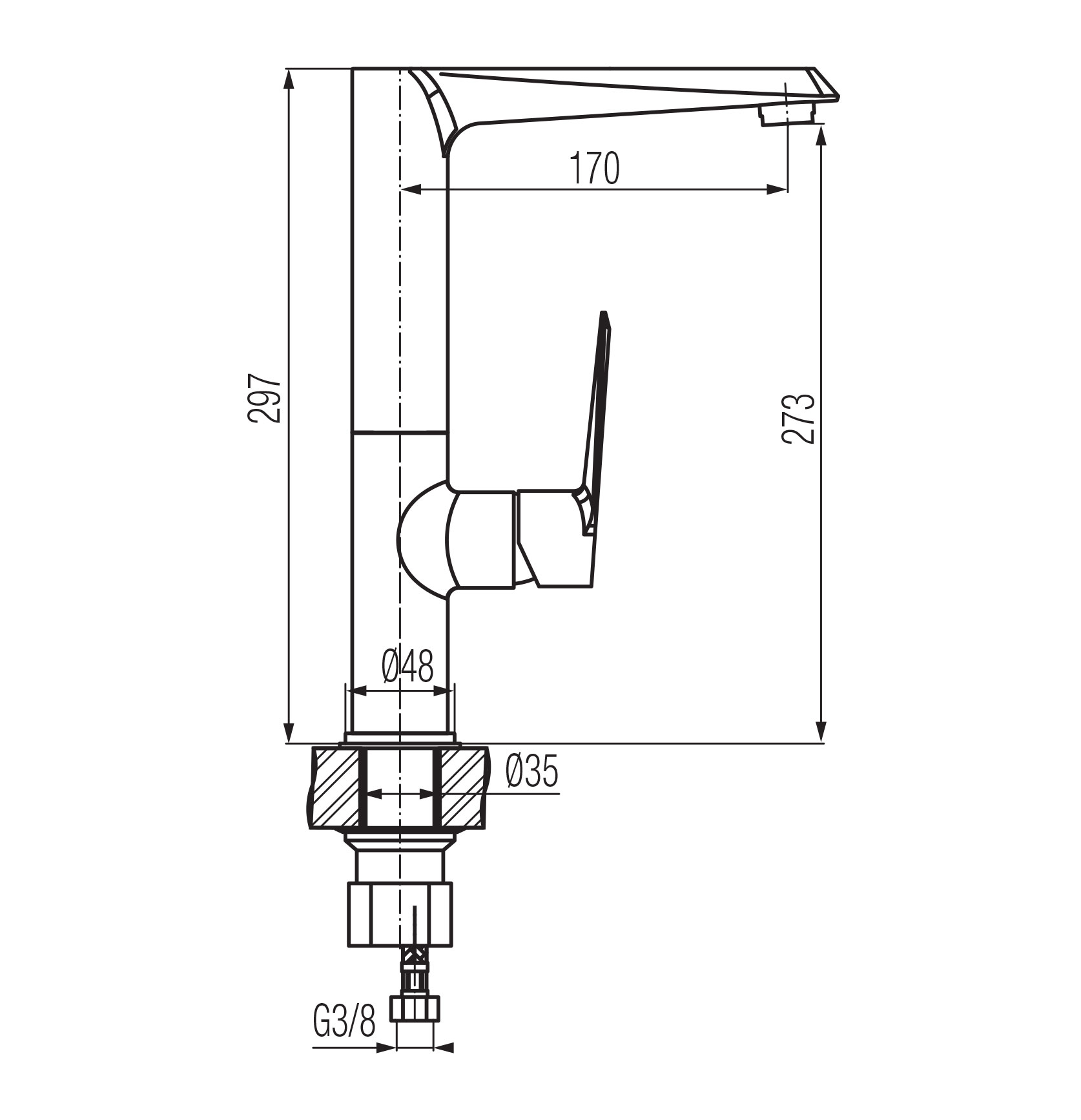 QUASAR Bateria kuchenna stojąca z obrotową wylewką z perlatorem MIKADO