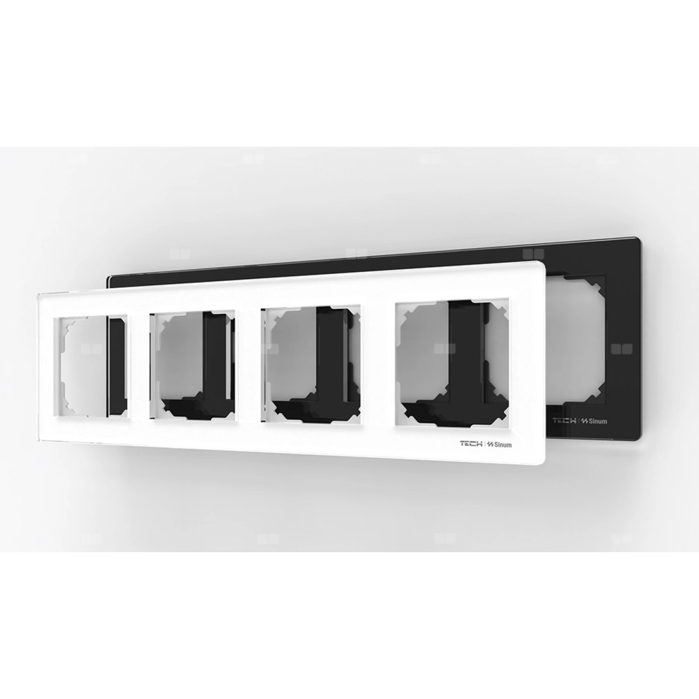 Szklane ramki umożliwiają konfigurowanie paneli włączników oraz montaż urządzeń w standardowych puszkach o średnicy 60 mm, zarówno w układzie poziomym, jak i pionowym. Dzięki nim można dowolnie konfigurować włączniki światła, regulatory pokojowe czy włączniki do rolet, dostosowując instalację do indywidualnych potrzeb i preferencji użytkownika. System ten zapewnia elastyczność i estetykę, łącząc nowoczesny design z funkcjonalnością.