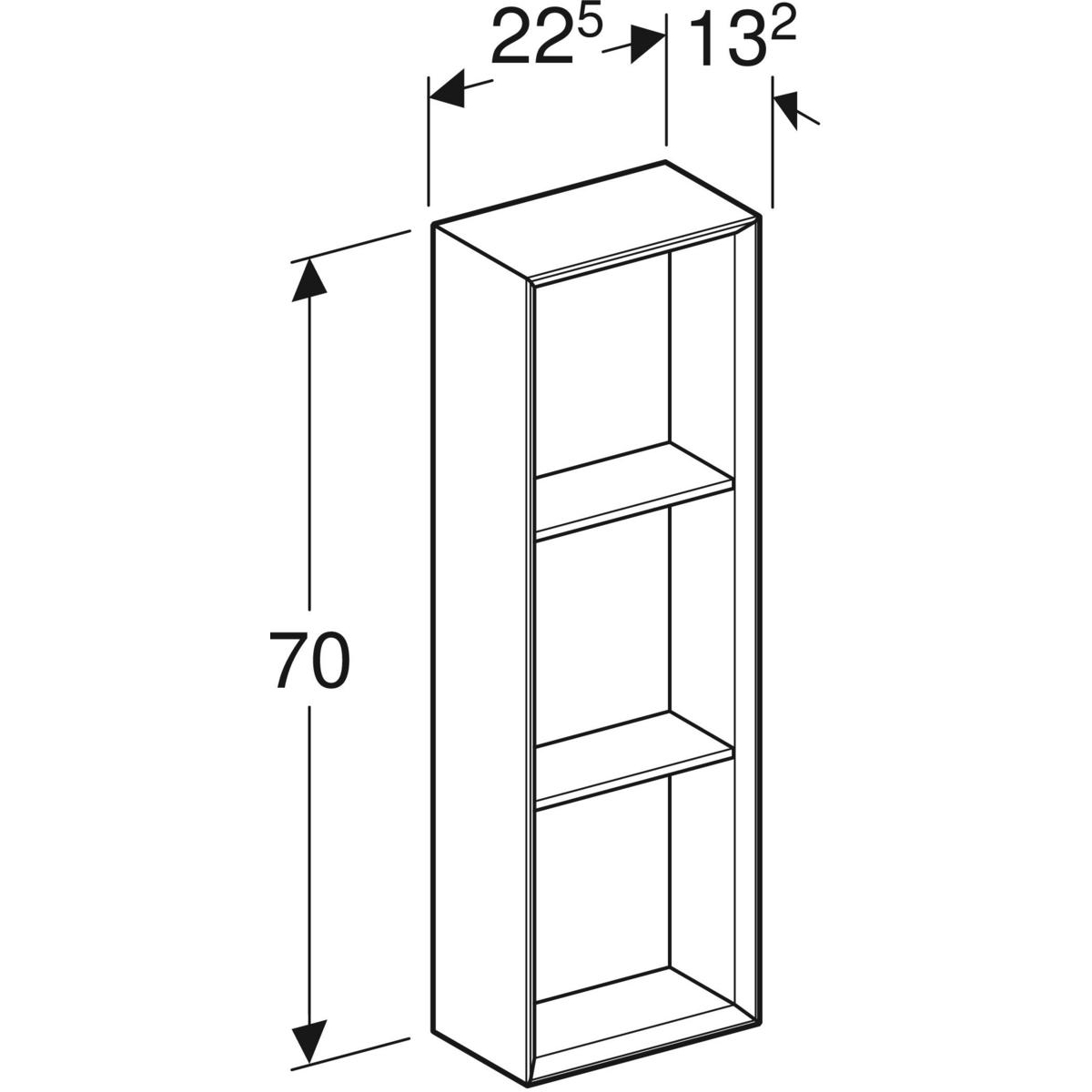 Regał iCon prostokątny: 22.5 cm x 70 cm x 13.2 cm, Biały / Lakierowany matowy
