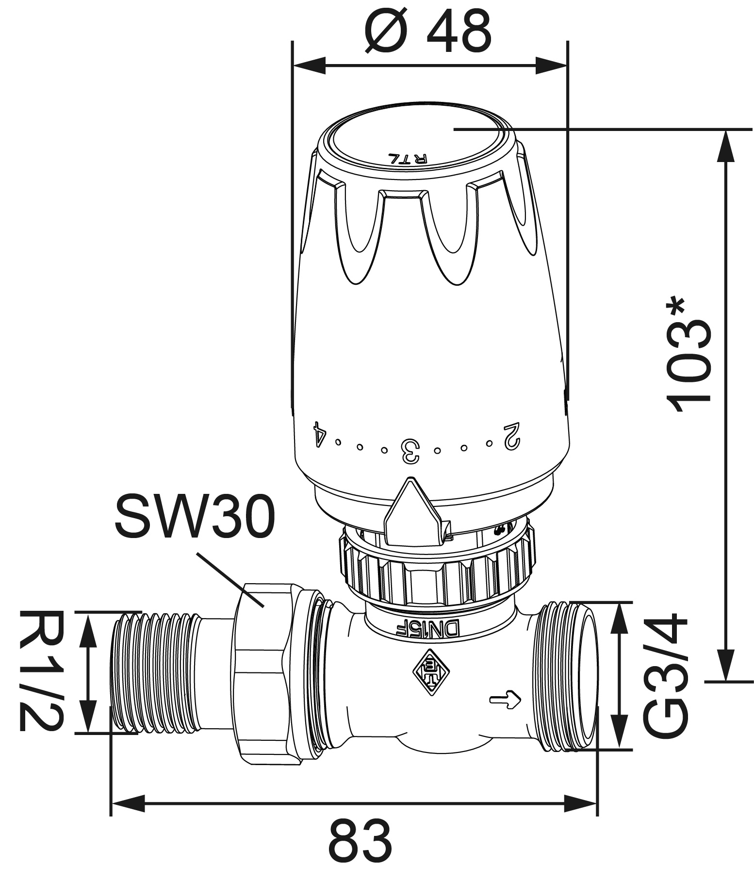 Regulacja ogrzewania podłogowego RTL-DX DN15, prosty