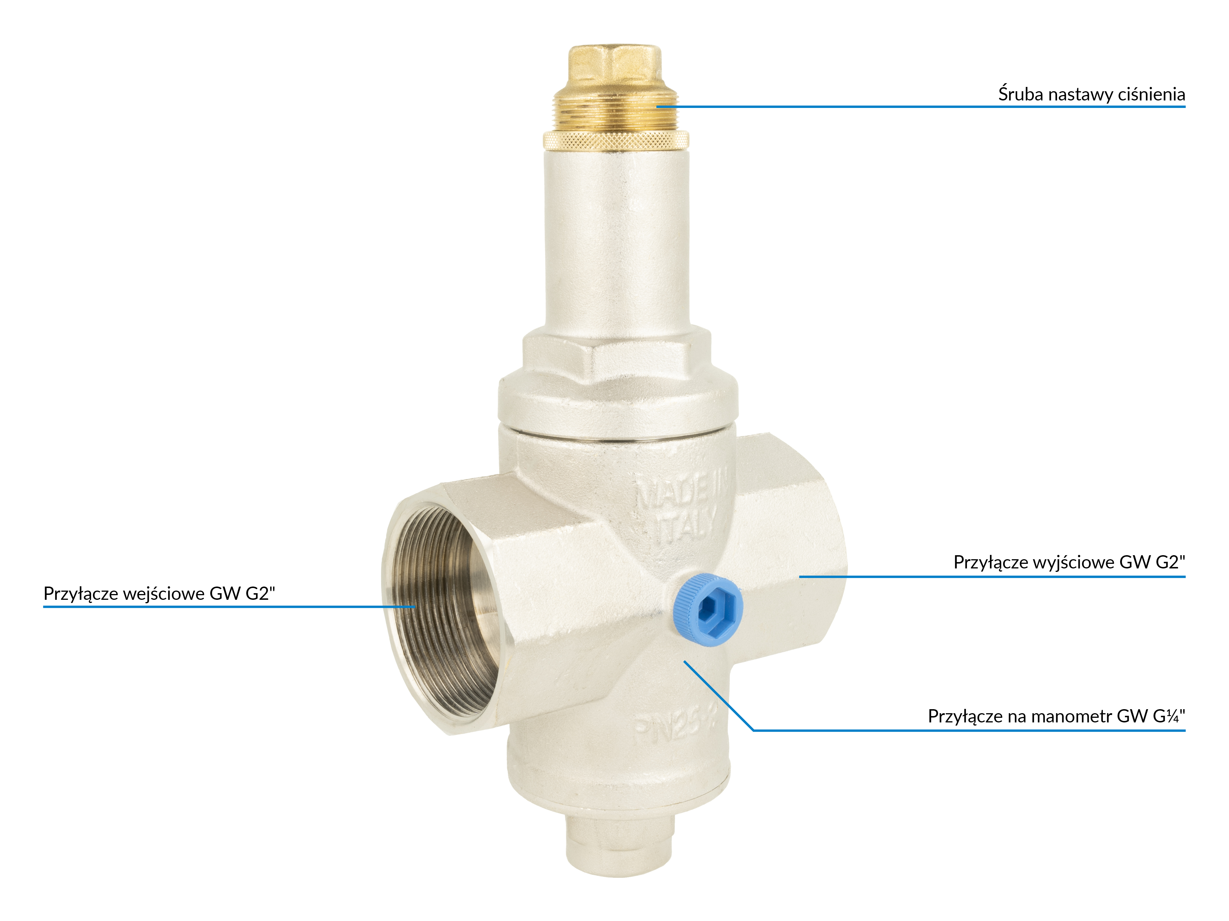 Obniża wysokie ciśnienie wodociągowe do wartości ustalonej.
