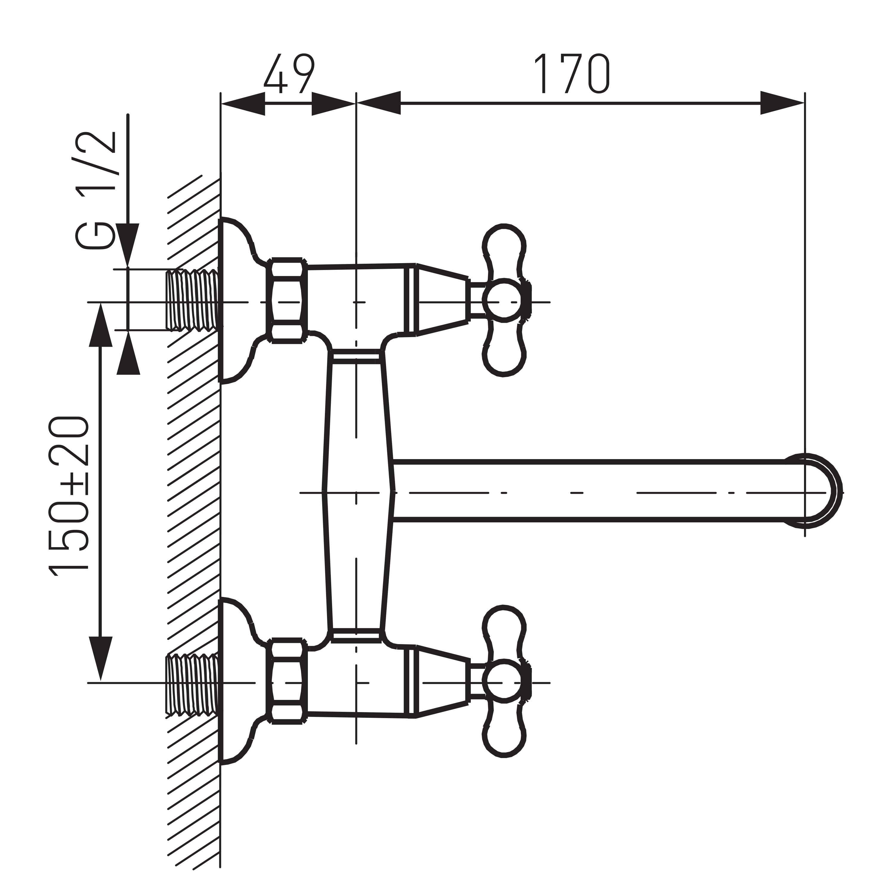 RETRO NEW bateria umywalkowa ścienna, chrom