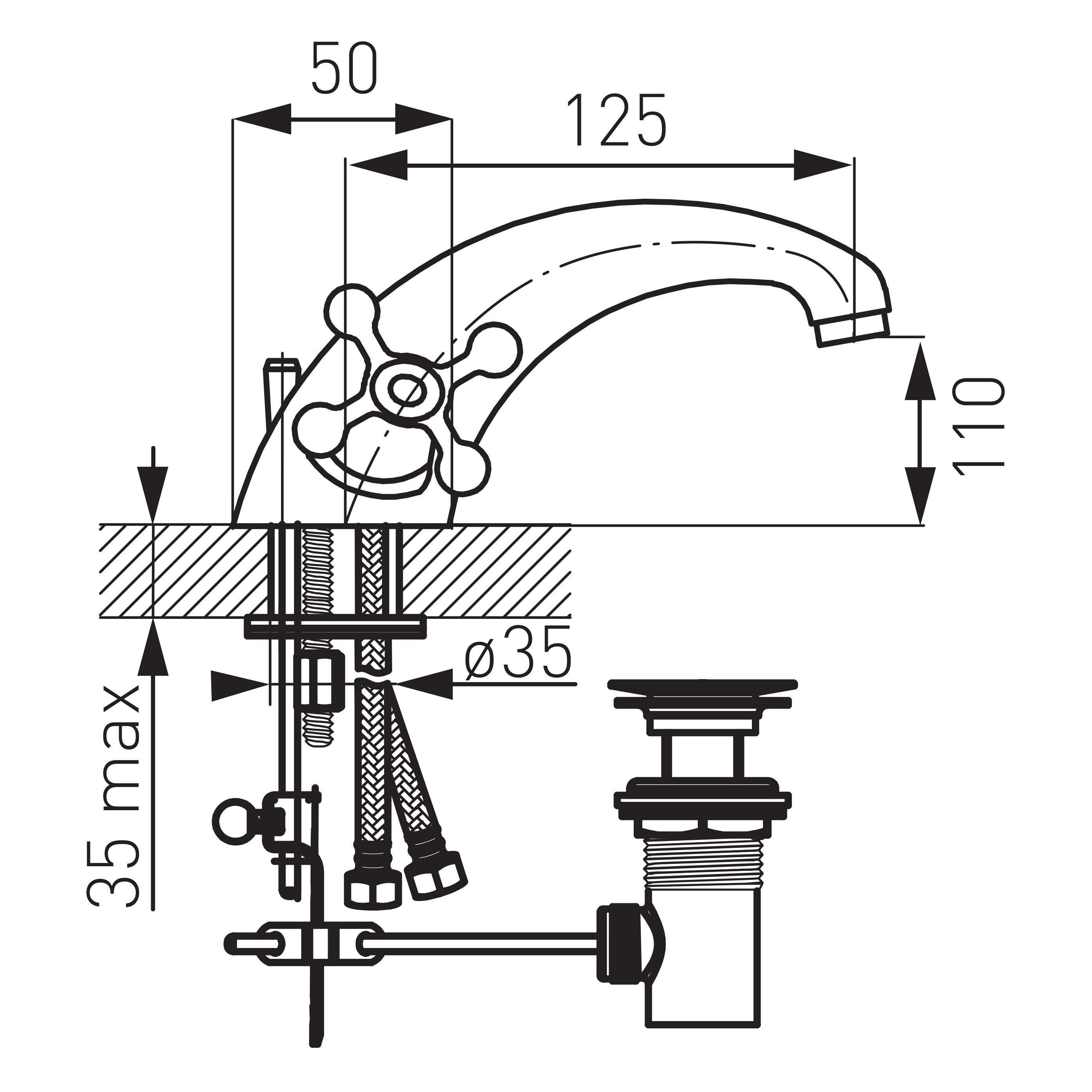 RETRO NEW bateria umywalkowa stojąca, chrom