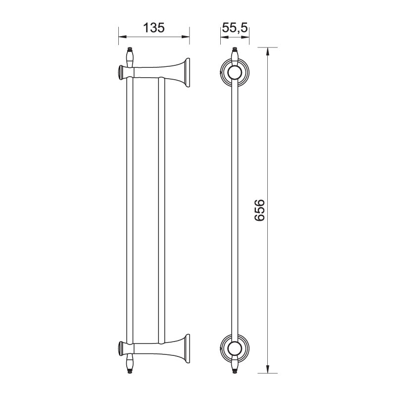 RETRO wieszak na ręcznik podwójny 60 cm, chrom