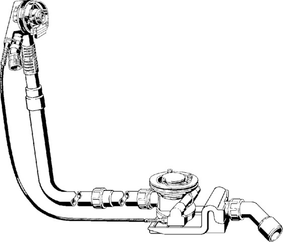 Rotaplex Trio-komplet odpływowo-przelewowy jednostka funkcyjna nr wzoru 6141.72 DN: 40/50 długość cięgna Bowdena: 1070 L: 150–680 H: 180–480 wanna o długości niestandardowej do wanien z otworem odpływowym fi 90