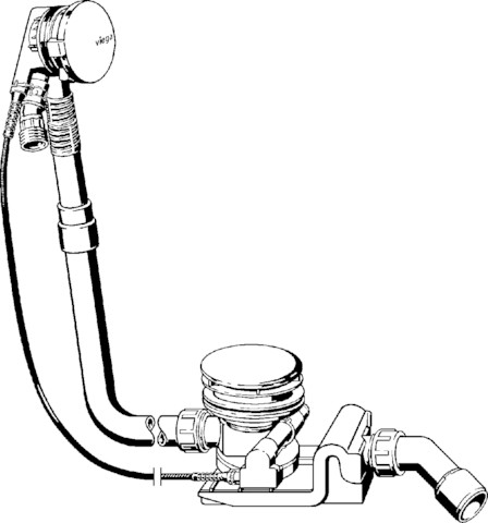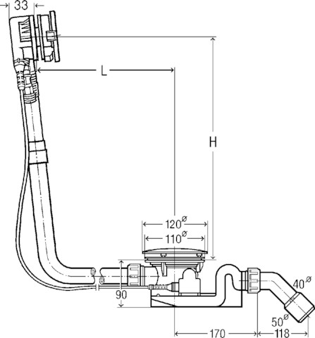 Rotaplex Trio-komplet odpływowo-przelewowy Visign RT5 nr wzoru 6141.60 DN: 40/50 długość cięgna Bowdena: 725 L: 150–400 H: 180–430 wanna z odpływem pośrodku do wanien z otworem odpływowym fi 90