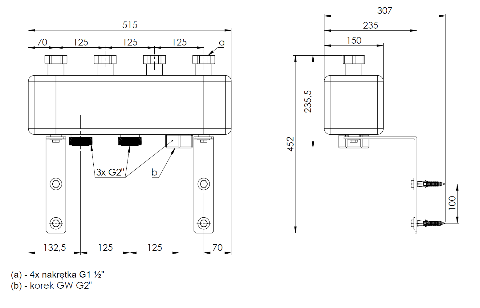 Rozdzielacz do instalacji c.o. AFRISO KSV 125-2 GZ 2'', 2-obieg. Nakrętka 1 1/2'', max. 160 kW