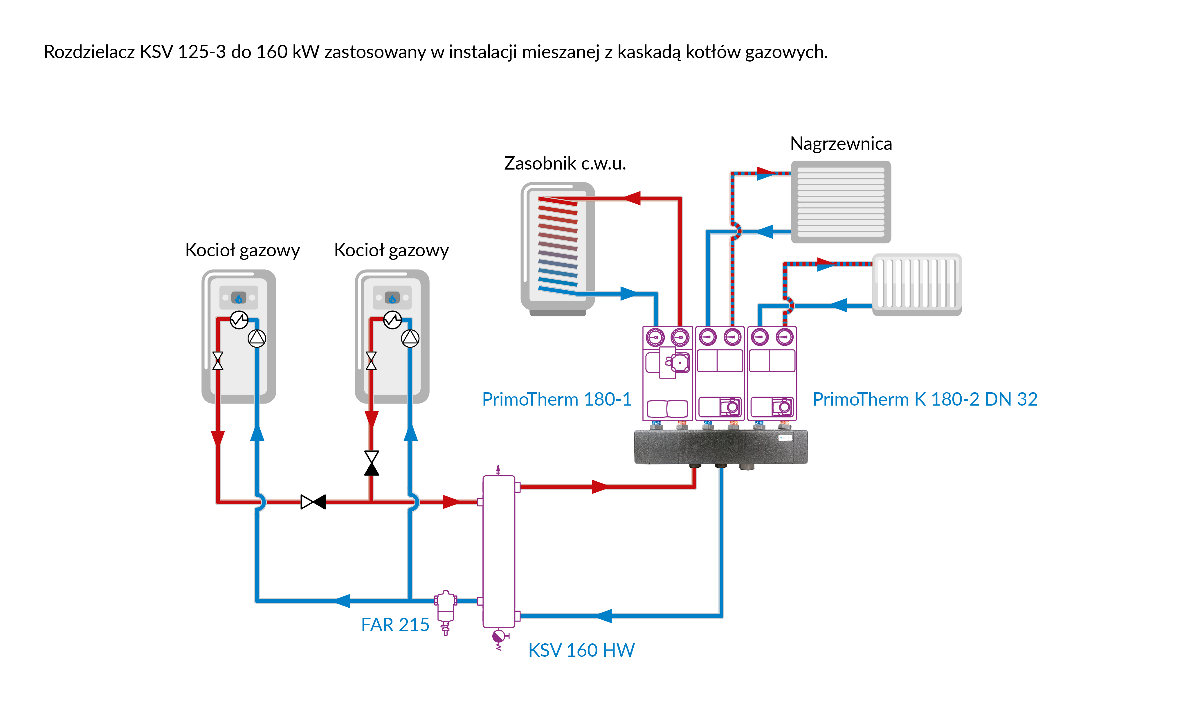 Stosowany w instalacjach grzewczych i chłodzących.Montowany na ścianie pomiędzy źródłem ciepła lub chłodu a grupami pompowymi.