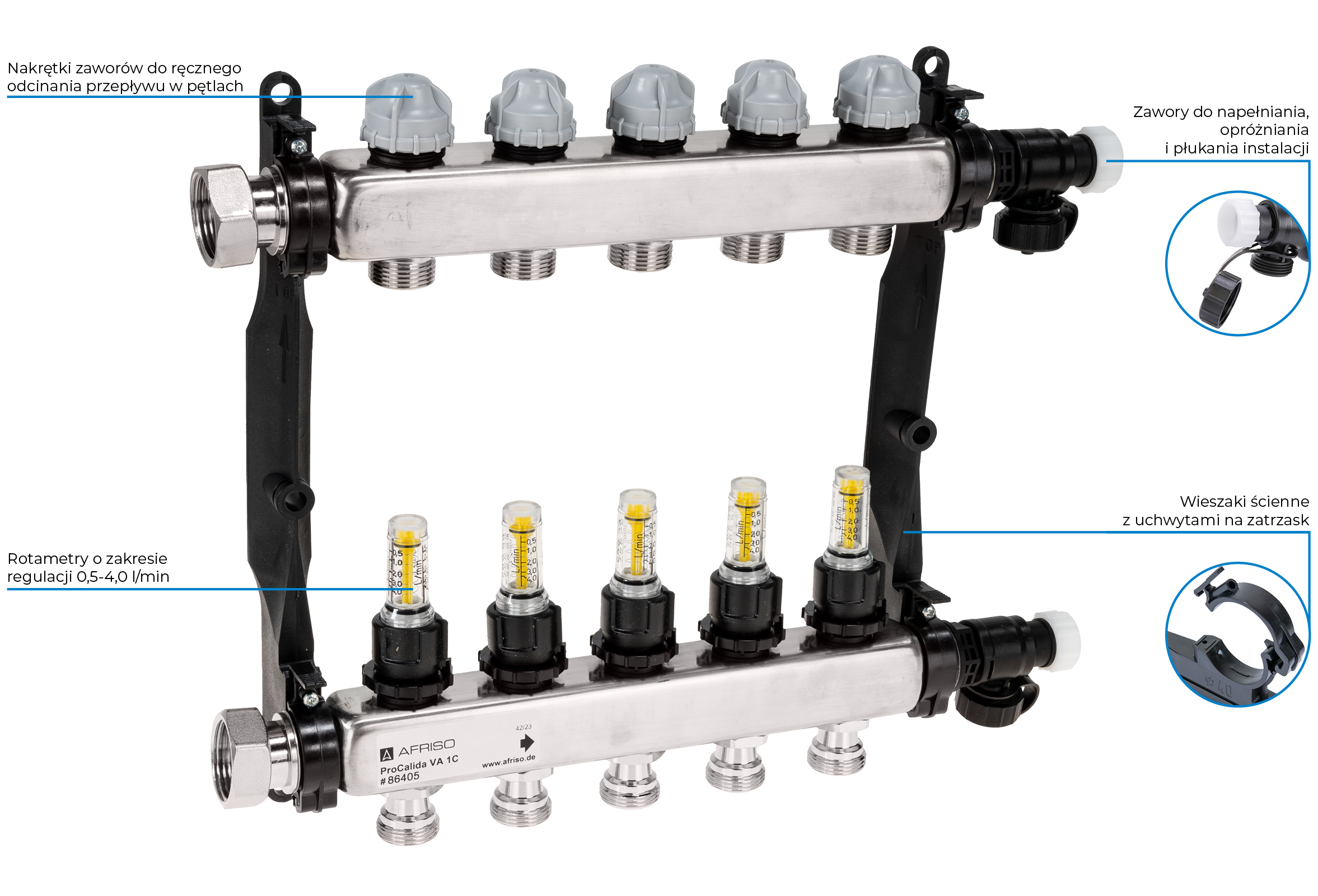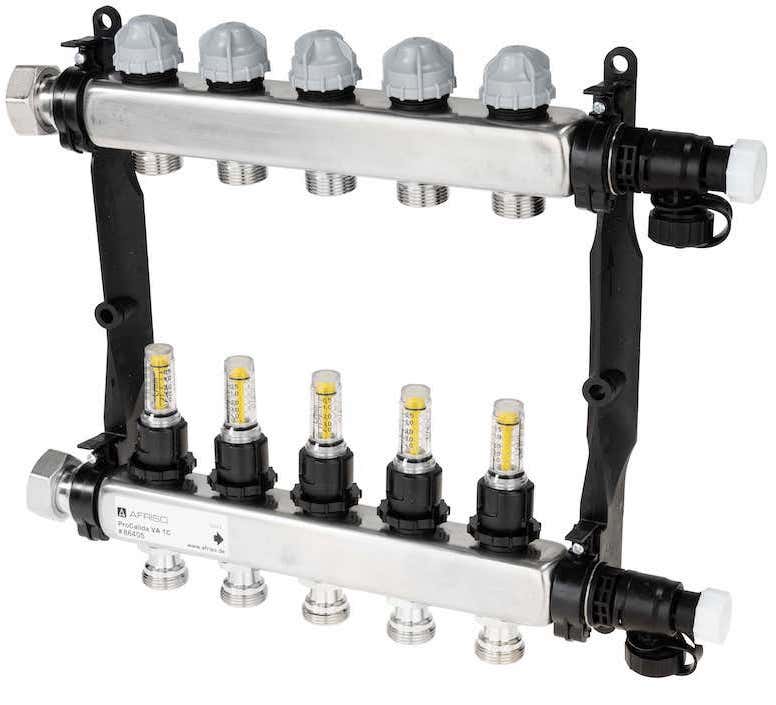 Rozdzielacz do ogrzewania podłogowego AFRISO ProCalida VA 1C 5-obieg. stal nierdzewna GZ 1'' x euroconus 3/4''