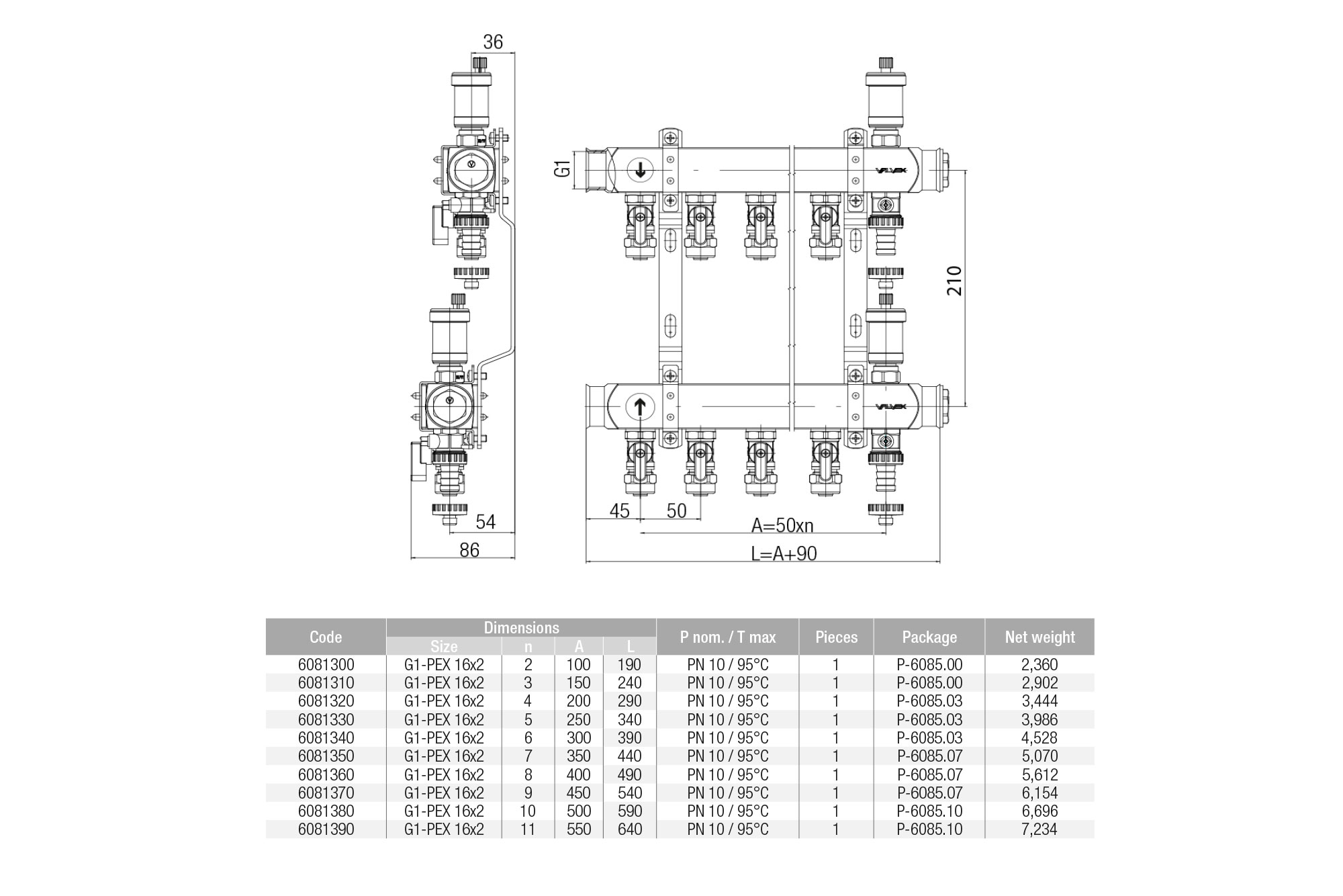 Rozdzielacz hydrauliczny VALVEX Base Inox K2MINI PLUS-11 stal nierdzewna, odgałęzień: 11 (1/2''), do CO + zawory odcinające