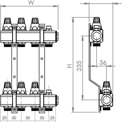 - rozdzielaczy mosiężnych w różnych konfiguracjach wyposażenia.