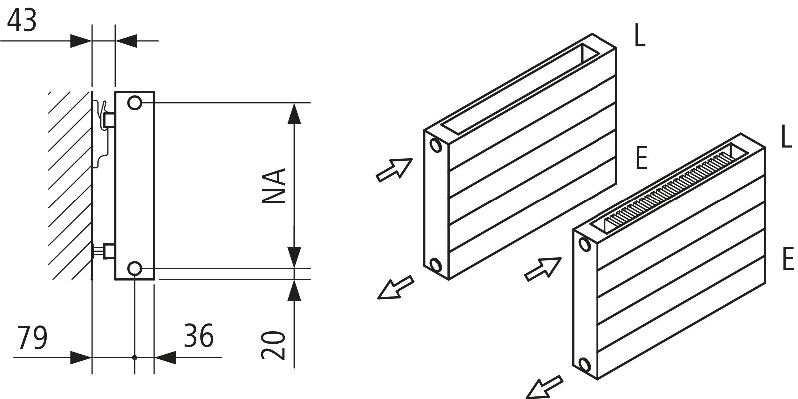 Pionowe, smukłe wykonanie – estetycznie wykończone za pomocą standardowo montowanej bocznej osłony lub idealne dostosowanie w wersji poziomej – z elegancką osłoną lub bez.
