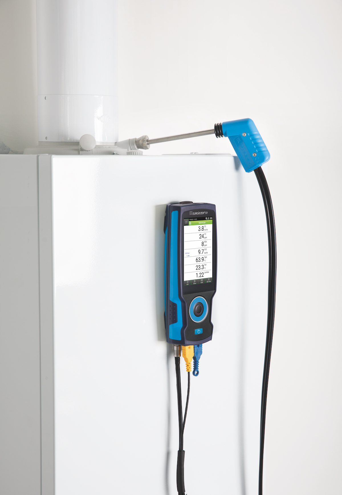 Pomiar parametrów gazów spalinowych kotłów C.O. umożliwiający kontrolę oraz regulację parametrów spalania w celu osiągnięcia maksymalnej sprawności energetycznej.Przeznaczony do małych i średnich kotłów opalanych gazem, olejem lub pelletem (kotły mogą być wyposażone w palniki o stałej lub modulowanej mocy).