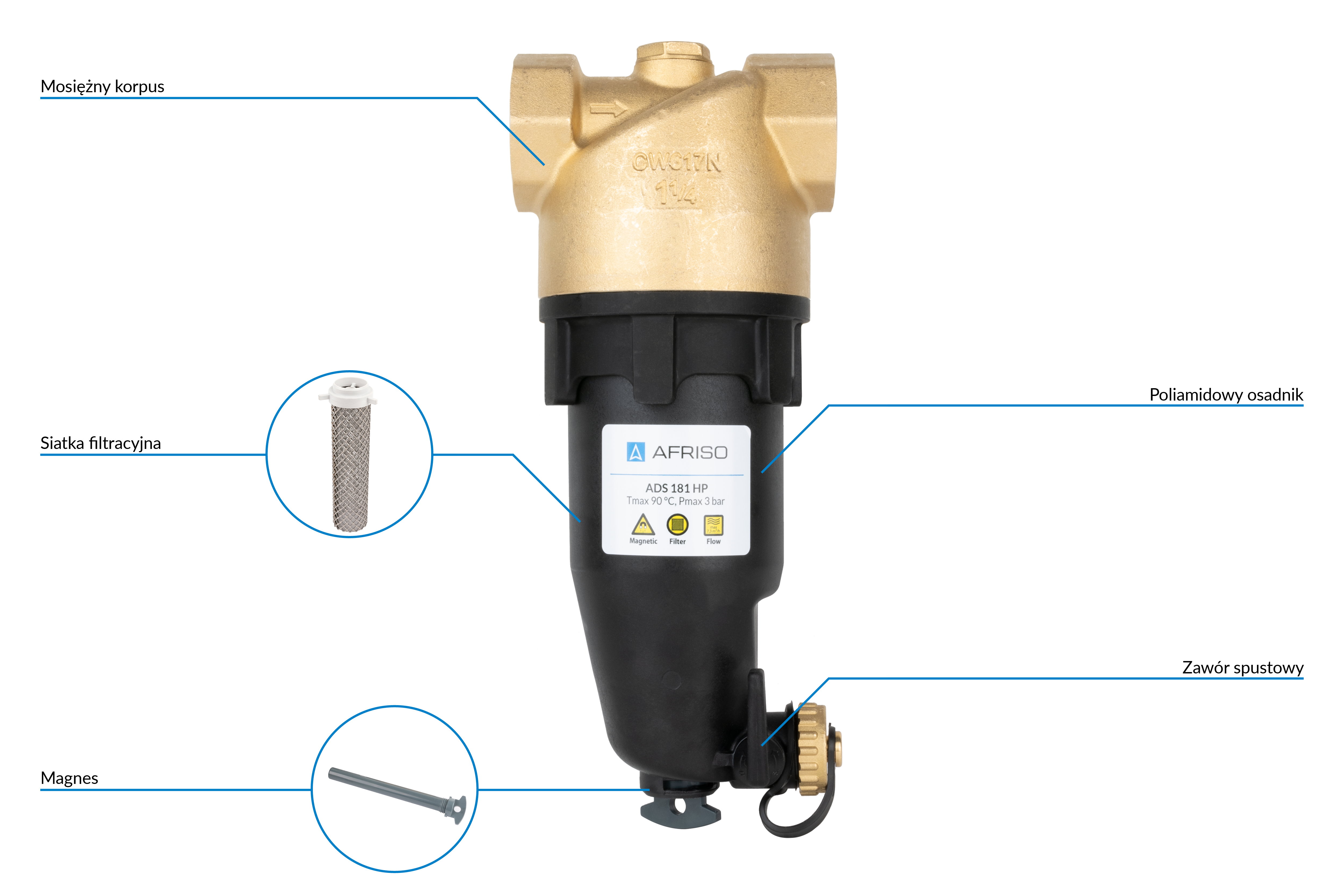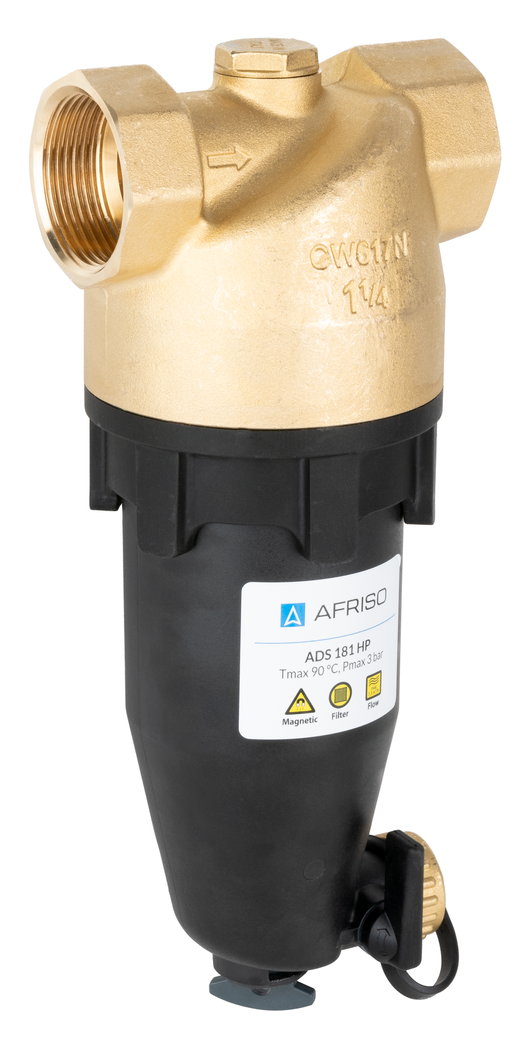 Separator AFRISO ADS 181 HP, do C.O., do klimatyzacji, 3 bar / 90'C, 1 1/4'' (GW), z wkładem magnesowymInstalacje i źródła ciepła