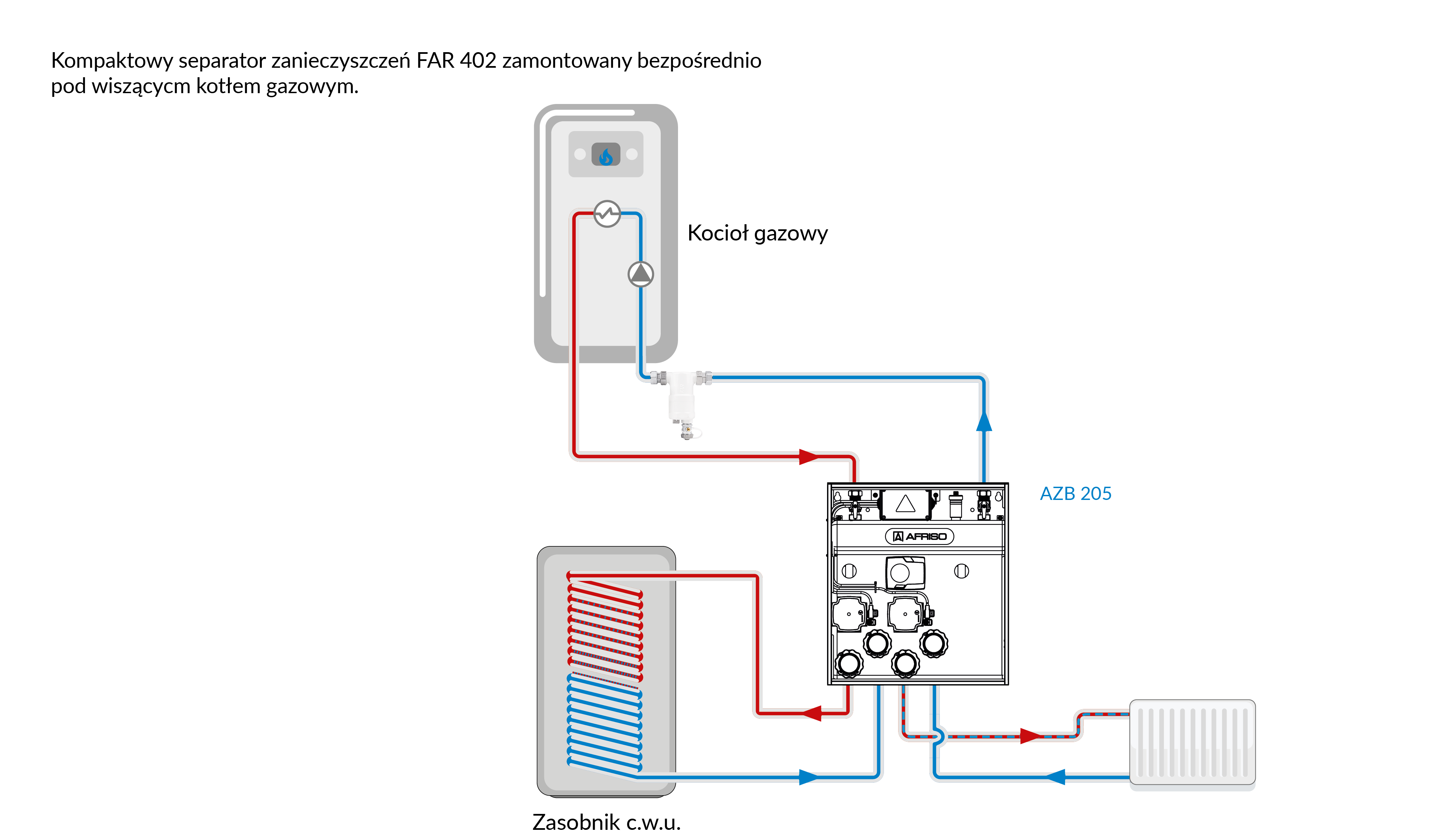 Stosowany w instalacjach grzewczych.Montowany bezpośrednio pod wiszącym kotłem gazowym