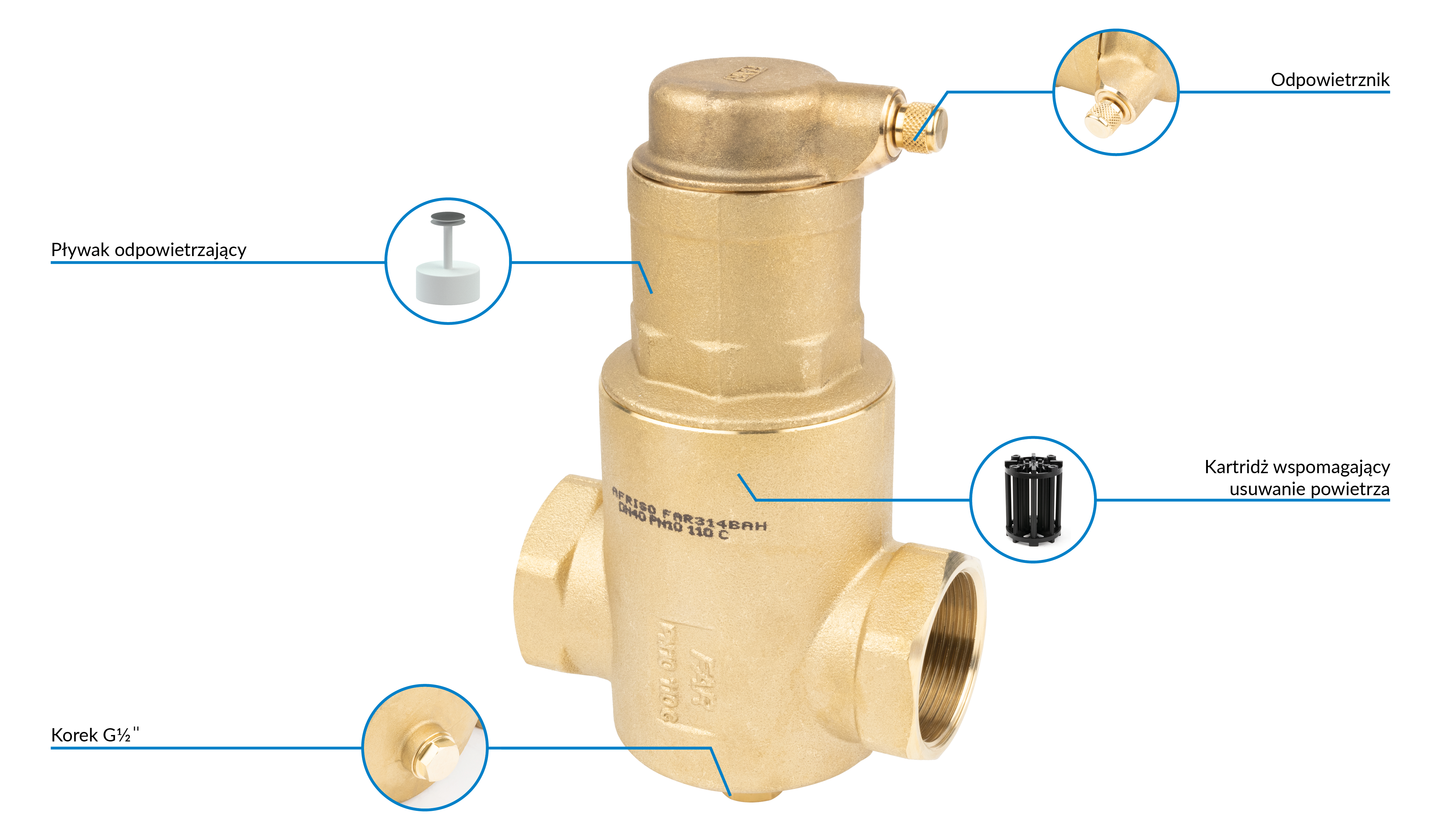 Separator mikropęcherzy AFRISO FAR 314, do C.O., do klimatyzacji, 10 bar / 110'C, 1 1/2'' (GW)Instalacje i źródła ciepła