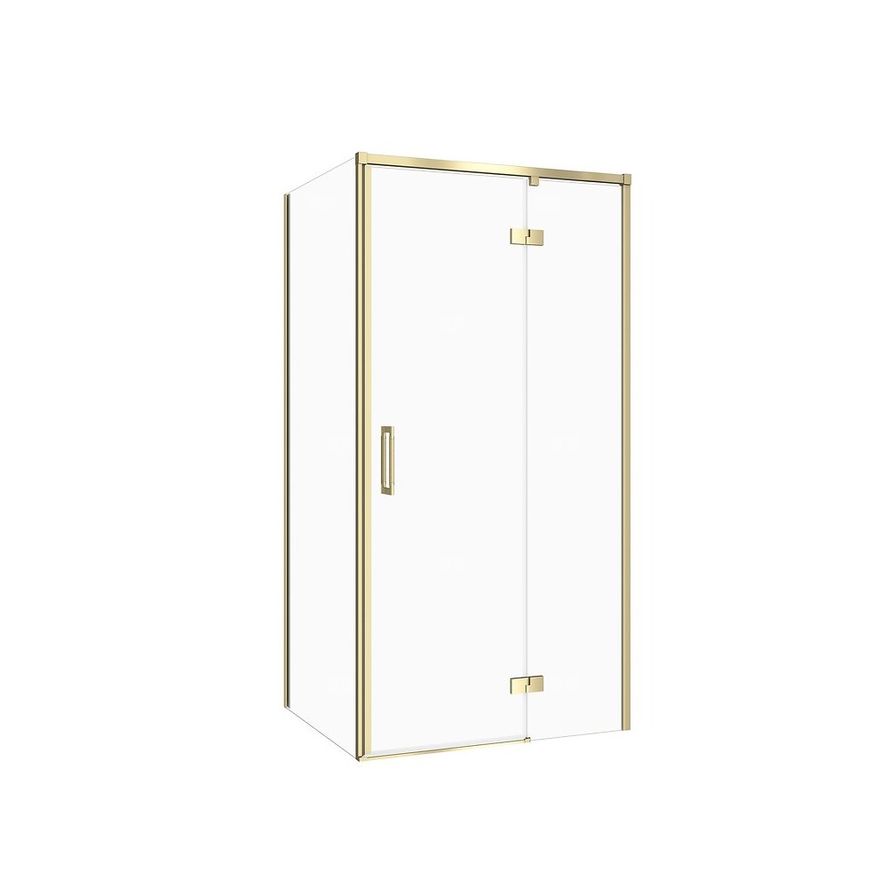 Kabina prysznicowa została wykonana z bezpiecznego szkła hartowanego o grubości 6 mm, które zapewnia stabilność konstrukcji oraz gwarantuje bezpieczeństwo użytkowania. Szkło wyposażone jest w ochronną powłokę hydrofobową CleanPro skutecznie zapobiegającą osadzaniu się kamienia oraz zanieczyszczeń, co pozwala na łatwiejsze utrzymanie kabiny w czystości. Metalowy zawias licowany z taflą szkła po wewnętrznej stronie kabiny posiada funkcję unoszenia i opuszczania drzwi, dzięki czemu żywotność uszczelek jest wydłużona. Innowacyjny mechanizm zawiasu pozwala na zatrzymanie drzwi, gdy te otworzą się pod kątem 90° co zapewnia ochronę przed przypadkowym uderzeniem. Dwustronne uchwyty z wysokiej jakości metalu mają radełkowe wykończenie przez co łączą w sobie stylistykę z funkcjonalnością i trwałością. Profil ścienny z regulacją zapewnia większą elastyczność montażu, gdyż jest przystosowany do użycia przy nierównych ścianach. Kabina prostokątna narożna. Wersja prawa. Wysokość 195 cm. Szerokość drzwi 100 cm, szerokość ścianki bocznej 80 cm. Drzwi uchylne z zawiasami punktowymi. Profile w kolorze złoty matowy. Szkło transparentne. Kabina przeznaczona do montażu z brodzikiem lub bezpośrednio na posadzce. Do kompletowania z kabiną dostępna jest szeroka oferta odpływów liniowych oraz brodzików prysznicowych w różnej kolorystyce i wysokości co umożliwia swobodę konfiguracji. Wysoką jakość produktu potwierdza długoletnia gwarancja.