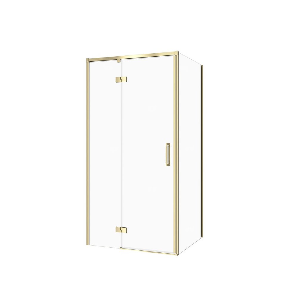 Kabina prysznicowa została wykonana z bezpiecznego szkła hartowanego o grubości 6 mm, które zapewnia stabilność konstrukcji oraz gwarantuje bezpieczeństwo użytkowania. Szkło wyposażone jest w ochronną powłokę hydrofobową CleanPro skutecznie zapobiegającą osadzaniu się kamienia oraz zanieczyszczeń, co pozwala na łatwiejsze utrzymanie kabiny w czystości. Metalowy zawias licowany z taflą szkła po wewnętrznej stronie kabiny posiada funkcję unoszenia i opuszczania drzwi, dzięki czemu żywotność uszczelek jest wydłużona. Innowacyjny mechanizm zawiasu pozwala na zatrzymanie drzwi, gdy te otworzą się pod kątem 90° co zapewnia ochronę przed przypadkowym uderzeniem. Dwustronne uchwyty z wysokiej jakości metalu mają radełkowe wykończenie przez co łączą w sobie stylistykę z funkcjonalnością i trwałością. Profil ścienny z regulacją zapewnia większą elastyczność montażu, gdyż jest przystosowany do użycia przy nierównych ścianach. Kabina prostokątna narożna. Wersja lewa. Wysokość 195 cm. Szerokość drzwi 100 cm, szerokość ścianki bocznej 80 cm. Drzwi uchylne z zawiasami punktowymi. Profile w kolorze złoty matowy. Szkło transparentne. Kabina przeznaczona do montażu z brodzikiem lub bezpośrednio na posadzce. Do kompletowania z kabiną dostępna jest szeroka oferta odpływów liniowych oraz brodzików prysznicowych w różnej kolorystyce i wysokości co umożliwia swobodę konfiguracji. Wysoką jakość produktu potwierdza długoletnia gwarancja.