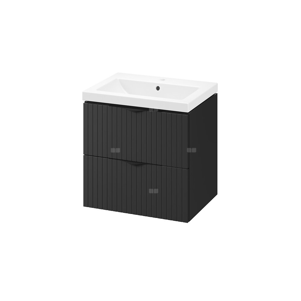 W skład zestawu wchodzi szafka podumywalkowa TIRSO 60 w wersji DSM oraz umywalka ceramiczna COMO 60. Szafka wyposażona w dwie pojemne szuflady z pełnym dnem, zapewniające więcej miejsca do przechowywania różnych akcesoriów łazienkowych - w związku z tym rekomendujemy zastosowanie syfonu oszczędzającego miejsce. Front szafki wykonany jest z ryflowanej płyty MDF foliowanej w matowej wersji, co nadaje jej subtelną fakturę i elegancki wygląd. Korpus szafki to płyta wiórowa laminowana, również w matowym wykończeniu. Prostokątna umywalka ceramiczna COMO 60 posiada otwór na armaturę i przelew w centralnej części, moze być skompletowana z korkami klik-klak ceramicznymi lub metalowymi z oferty Cersanit.