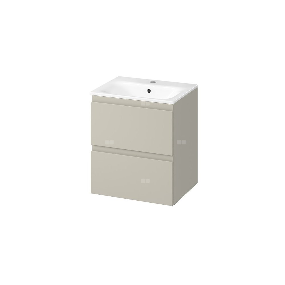 W skład zestawu wchodzi szafka podumywalkowa MODUO w wersji do samodzielnego montażu oraz umywalka wpuszczana w blat MODUO 50. Front szafki wykonany został z płyty MDF, lakierowanej na kolor kaszmirowy o wykończeniu matowym. Szafka posiada dwie pełne szuflady, wygodne, frezowane uchwyty oraz system cichego domykania, rekomendujemy zastosowanie syfonu oszczędzającego miejsce.