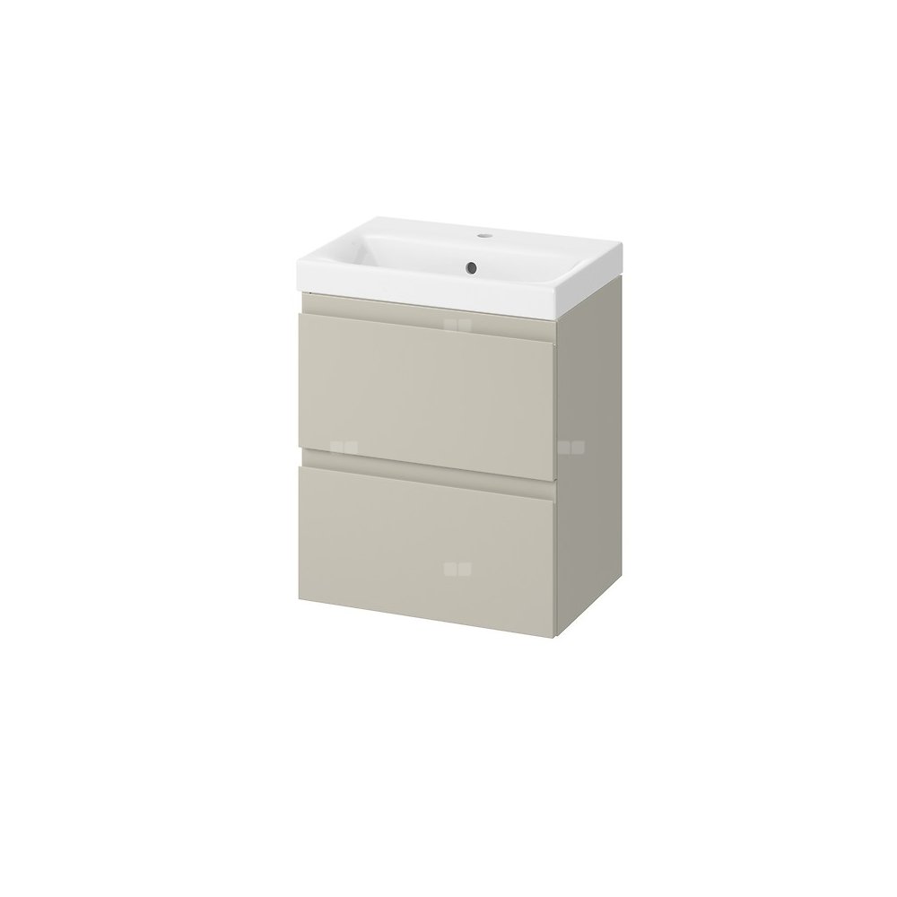 W skład zestawu wchodzi szafka podumywalkowa MODUO SLIM w wersji do samodzielnego montażu oraz umywalka ceramiczna MODUO SLIM 50. Dzięki zmniejszonej głębokości, zestaw można zamontować nawet w wąskich pomieszczeniach. Front szafki wykonany został z płyty MDF, lakierowanej na kolor kaszmirowy o wykończeniu matowym. Szafka posiada dwie pełne szuflady, wygodne, frezowane uchwyty oraz system cichego domykania, rekomendujemy zastosowanie syfonu oszczędzającego miejsce.