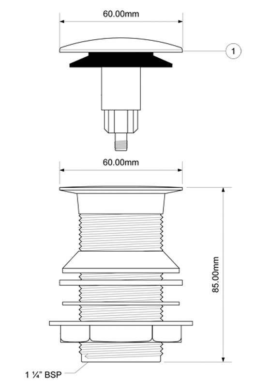 Spust umywalkowy klik-klak kwadratowy DEKORACYJNY 11/4x70mm bez przelewem CHROM