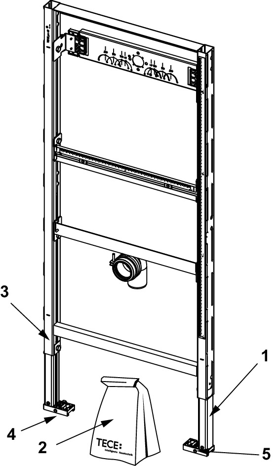Stelaż pisuarowy do natynkowych zaworów spłukujących oraz systemów spłukujących "ukrytych" schowanych za ceramiką. Stelaż montażowy do mocowania na kształtownikach stalowych TECEprofil lub do montażu w ścianach z profili metalowych lub drewnianych oraz jako ścianka przednia lub moduł narożnikowy.