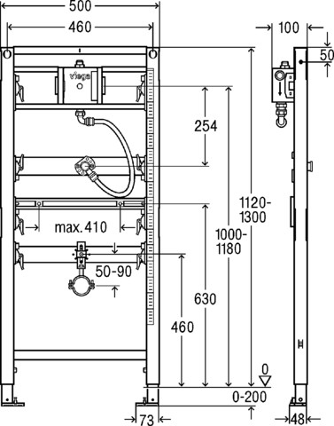 Stelaż podtynkowy do pisuaru VIEGA 856032, 1120 x 500 x 100 mm, regulowana wysokość, ze spłuczką ciśnieniową