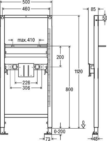 Stelaż podtynkowy do umywalki VIEGA 8536, 1120 x 500 x 85 mm, bateria: stojąca