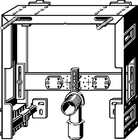 Prevista Pure-blok naścienny do umywalki. Przeznaczenie: umywalka z armaturą jednootworową, do wbudowania i zabudowania, stal. Wyposażenie: Rama ocynkowana, uchwyt z regulacją wysokości i izolacja akustyczna do przyłącza wody zimnej i ciepłej, materiał do mocowania, łuk odpływowy z możliwością skrócenia DN40/50 z nyplem gumowym DN50/30, nr wzoru 8550, nr kat. 776 596,