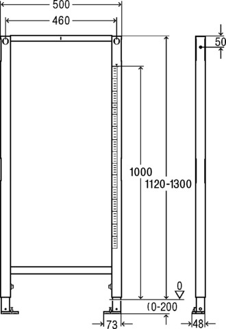 Stelaż podtynkowy do umywalki VIEGA 8570, 1200 x 500 x 45 mm, bateria: stojąca, regulacja wysokośći
