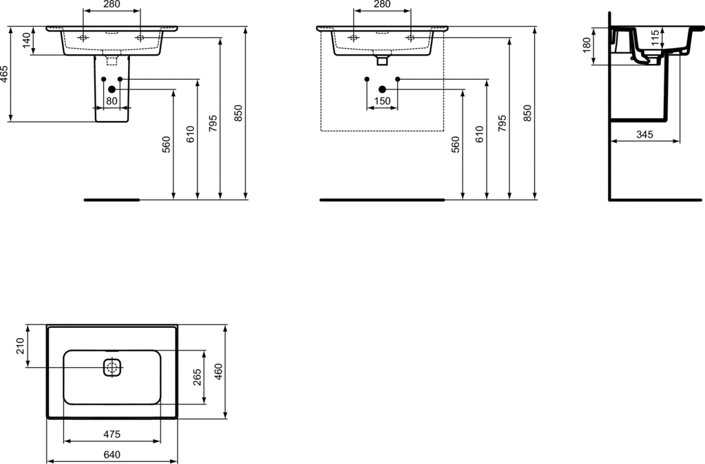 - Typ: Wpuszczane w blat/Z powierzchnią boczną
