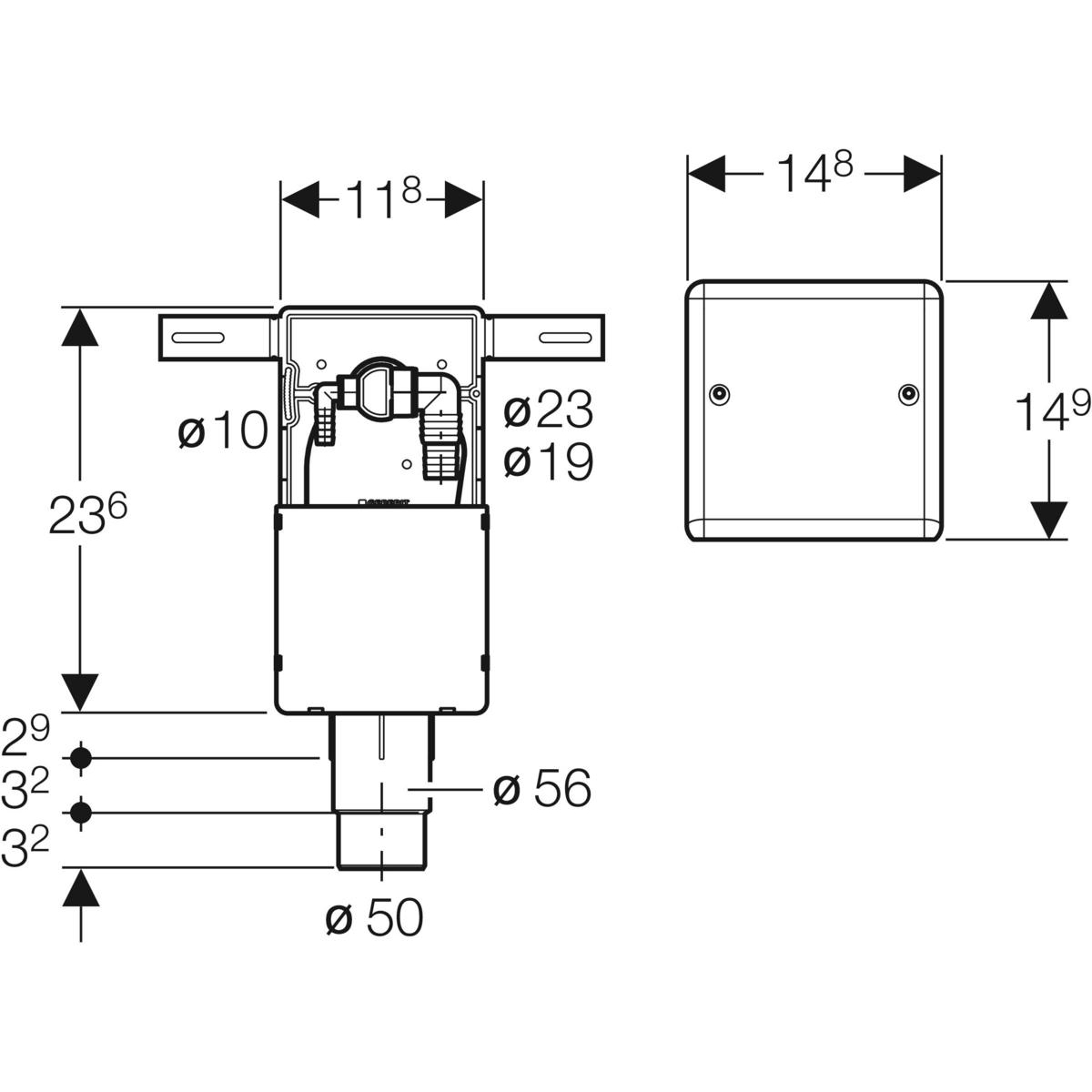 Syfon podtynkowy Geberit do urządzeń, z dwoma przyłączami, skrzynka do montażu w ścianie i płytka przykrywająca: d=50–56mm