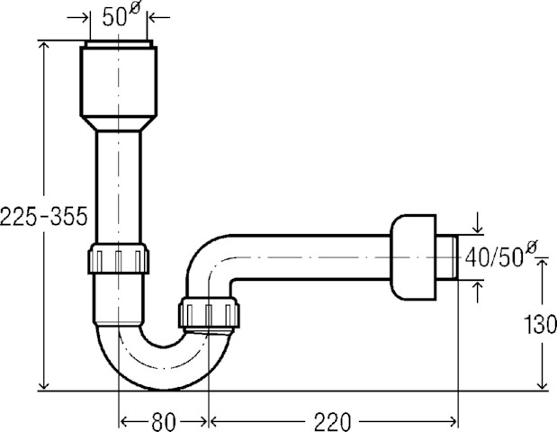 Syfon rurowy przeznaczenie: zlewozmywak lub pisuar bez uformowanego syfonu, tworzywo sztuczne, nr wzoru 7985.94 DN1: 50 DN2: 50