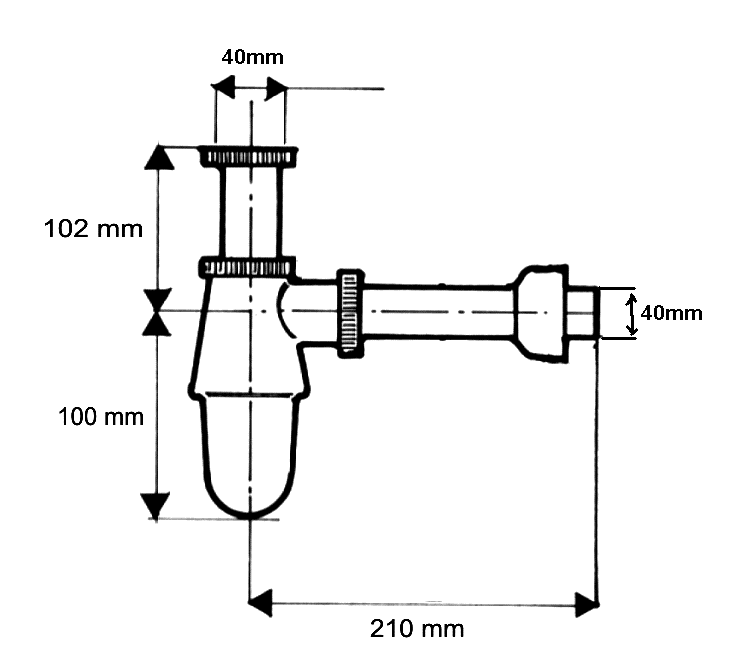 Syfon zlewozmywakowy butelkowy 1.1/2″x40mm, wykonany z mosiądzu, pokryty warstwą chromu, bez spustu.