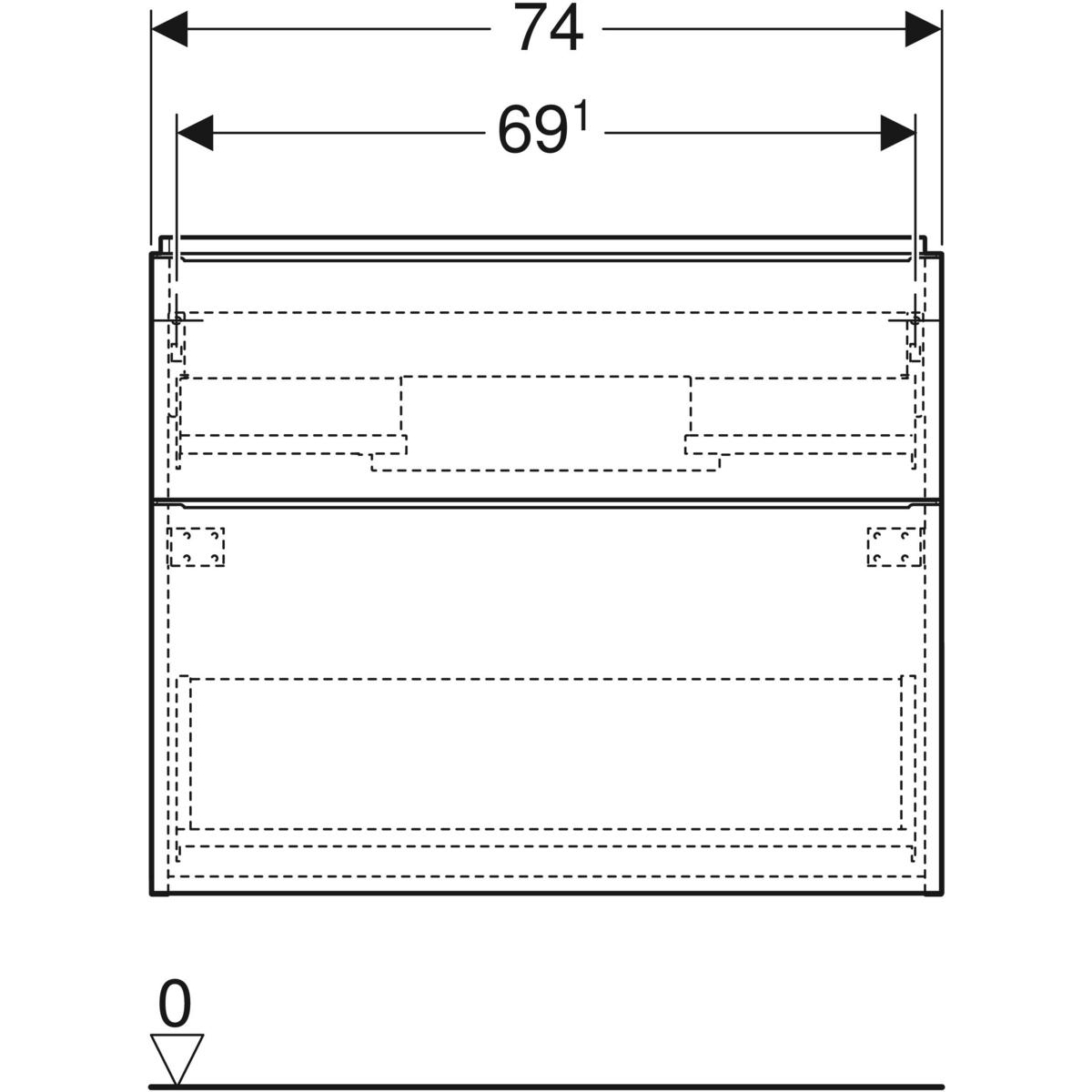Szafka pod umywalkę Geberit iCon, z dwoma szufladami, krótka: Szerokość umywalki=75cm, Korpus i front: orzech hickory / melaminowa struktura drewna, Uchwyt: lava / malowany proszkowo, matowy