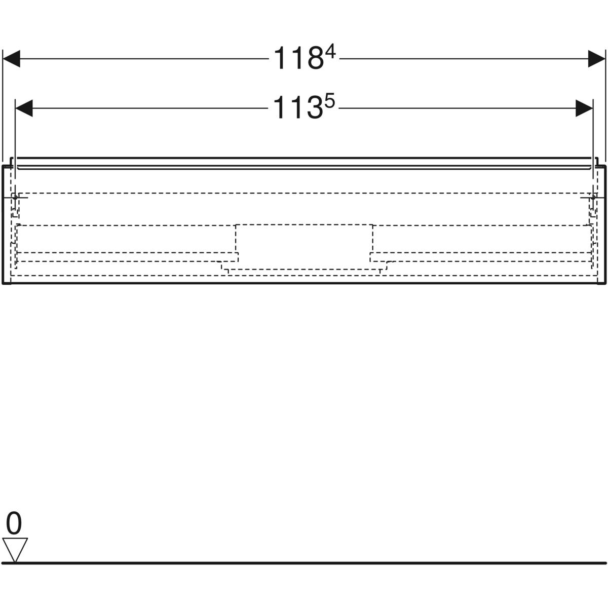 Szafka pod umywalkę Geberit iCon, z jedną szufladą: Szerokość umywalki=120cm, Korpus i front: dąb / melaminowa struktura drewna, Uchwyt: lava / malowany proszkowo, matowy