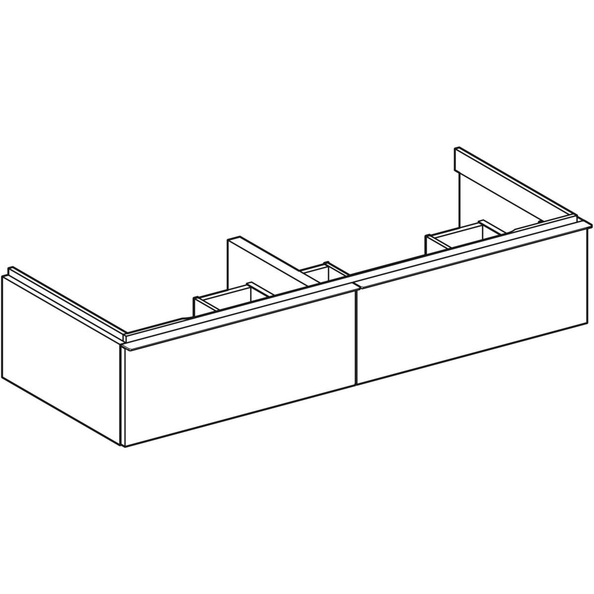 Szafka pod umywalkę podwójną Geberit iCon, z dwoma szufladami: Szerokość umywalki=120cm, H=24.7cm, Korpus i front: orzech hickory / melaminowa struktura drewna, Uchwyt: lava / malowany proszkowo, matowy