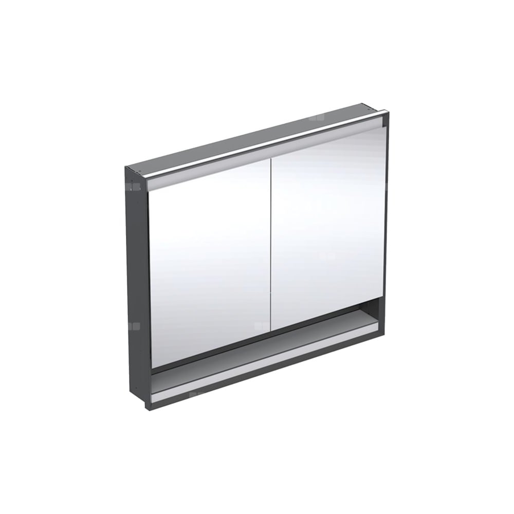 Szafka z lustrem Geberit ONE z wnęką i ComfortLight, z dwoma drzwiami, montaż podtynkowy, wysokość 90 cm: B=105cm, Czarny mat / Aluminium malowane proszkowo