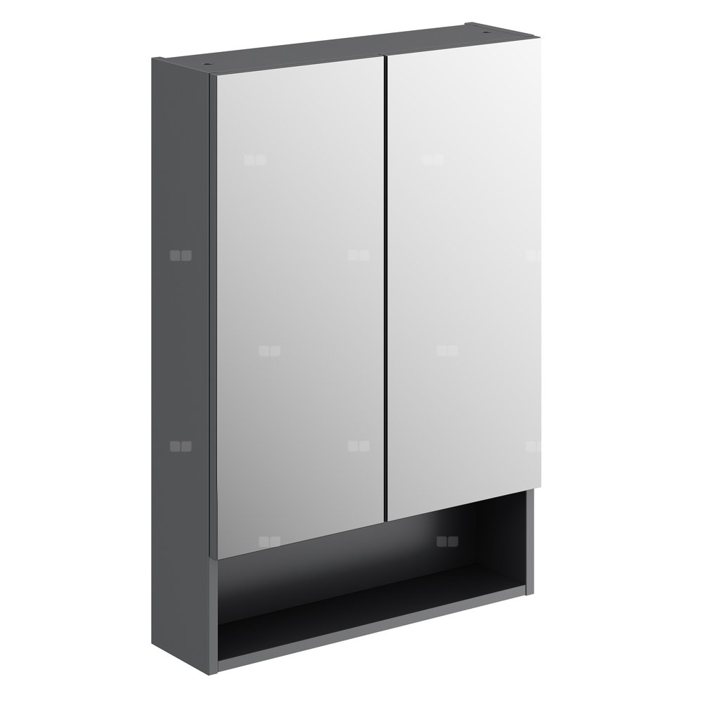 Szafka z lustrem Geberit Selnova Square, z dwoma drzwiami i dwoma szklanymi półkami: 58.8x85x17.5cm, Lava / Lakierowany matowy
