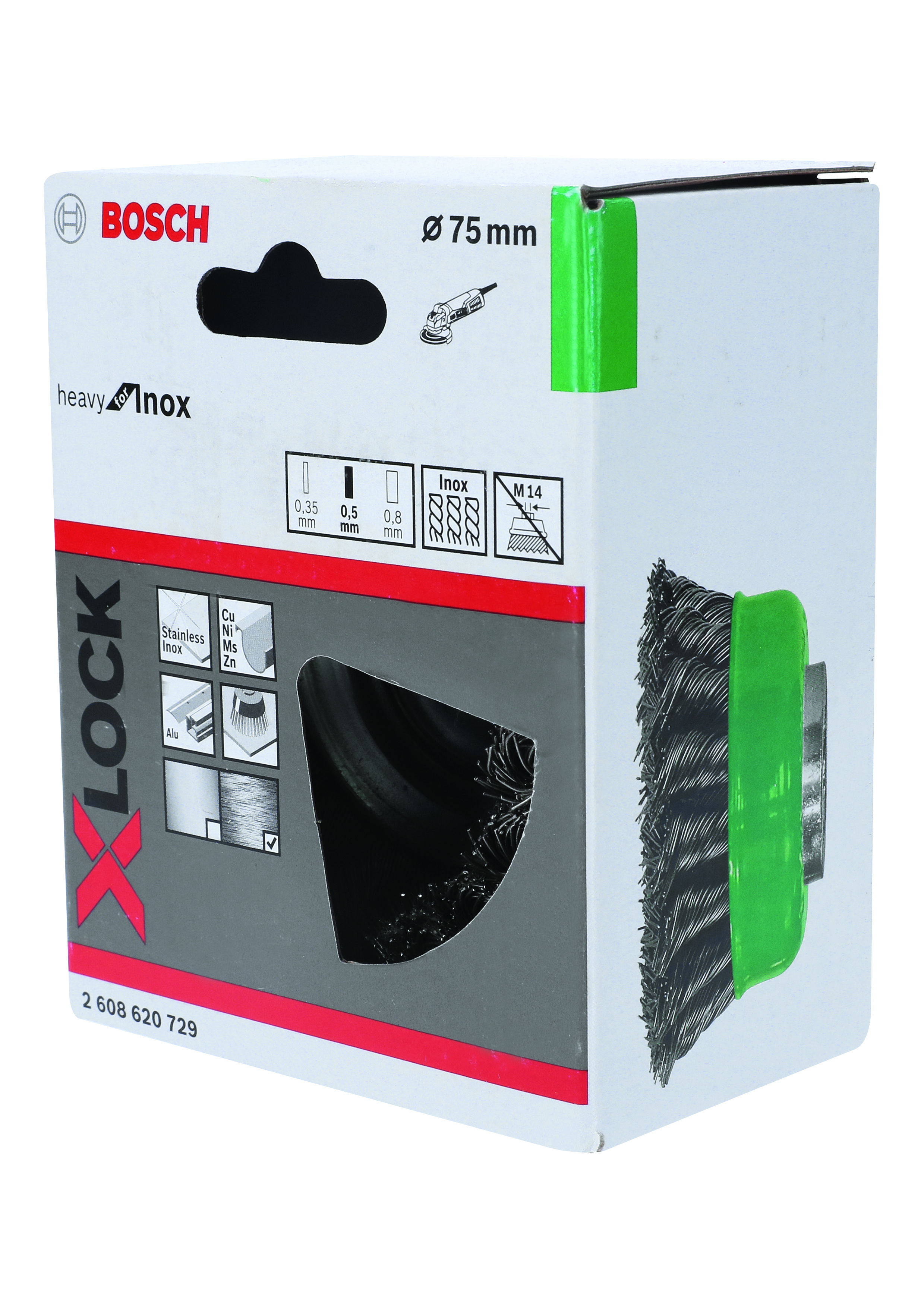 Szczotka garnkowa 75 z systemem X-LOCK, stal nierdzewna 75 mm, 0,5 mm, X-LOCK
