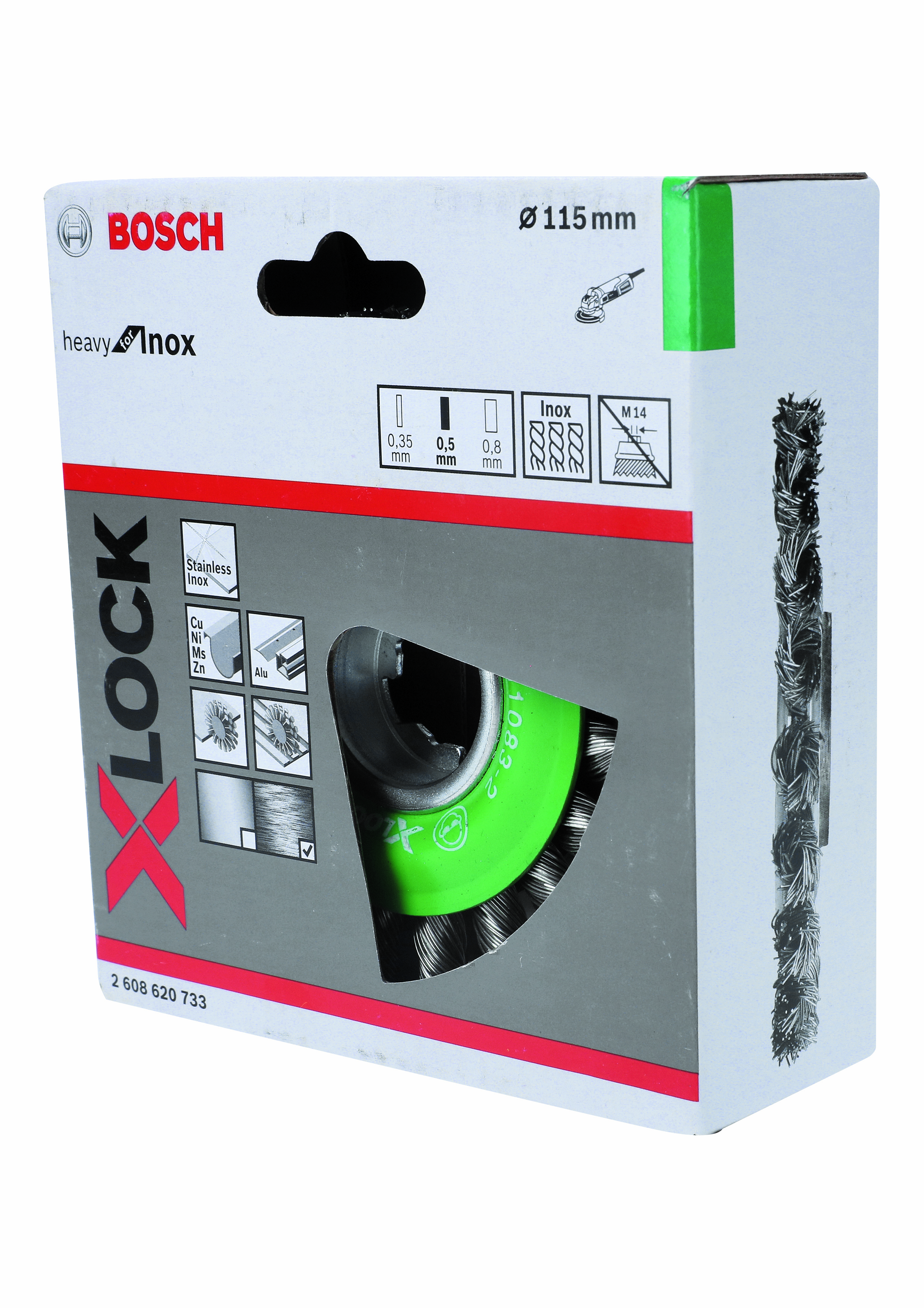 Szczotka tarczowa z drutu 115 pleciona, stal nierdzewna z systemem X-LOCK 115 mm, 0,5 mm, X-LOCK
