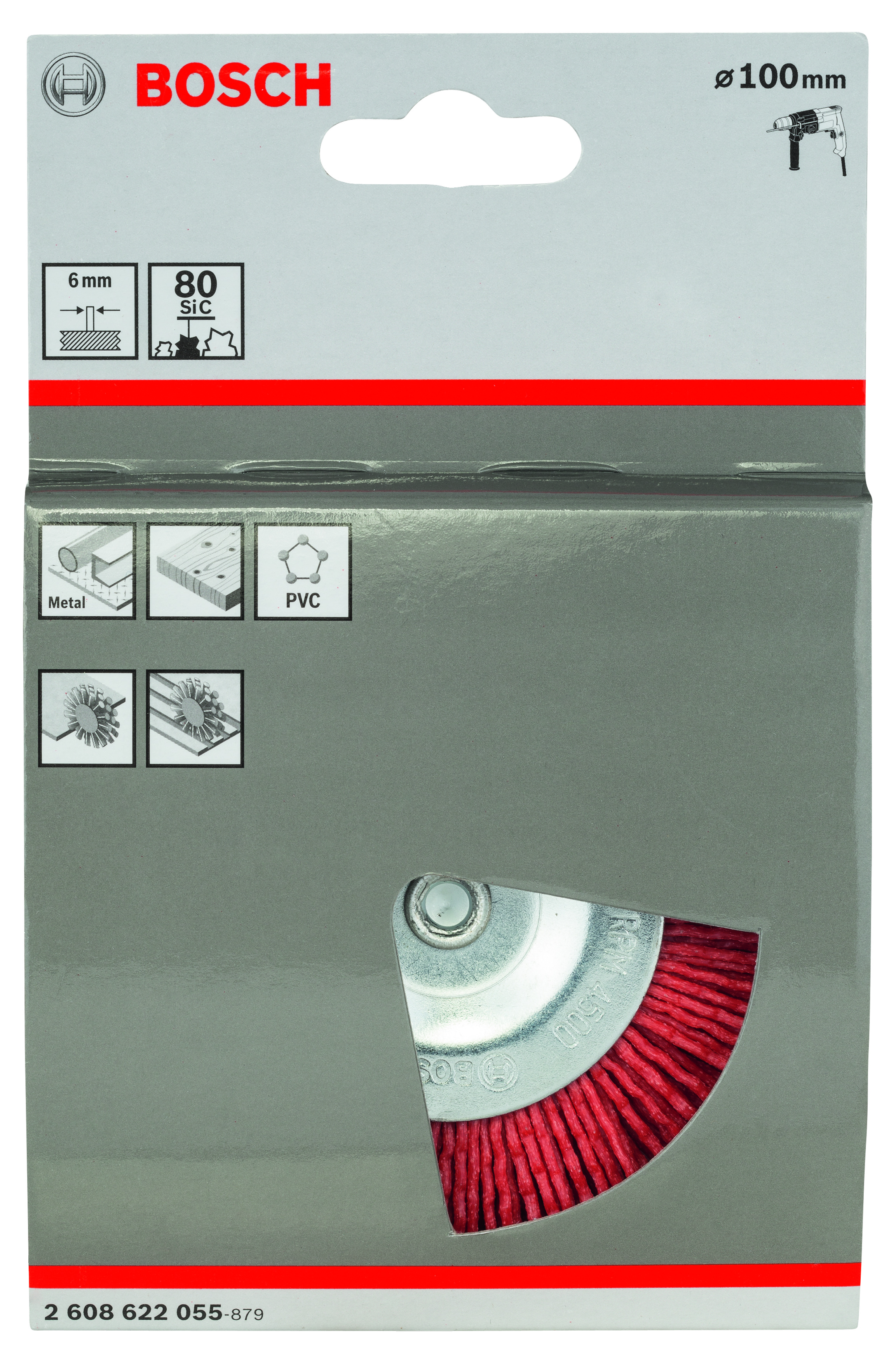 Tekst produktu, osprzęt szary Szczotka tarczowa – drut nylonowy z korundowym mat. ściernym K80 Do usuwania lakieru, usuwania rdzy, wygładzania, matowania i czyszczenia drewna, metalu i PCW na małych powierzchniach, w rowkach i na krawędziach, do strukturowania drewna oraz usuwania kolorowych nalotów na spawach ze stali szlachetnej. Dopasowuje się idealnie do obrysu obrabianego przedmiotu, nie zmieniając znacząco jego powierzchni. Pracuje ze stałą wydajnością ścierania, ponieważ stale uwalniają się ziarna szlifierskie.