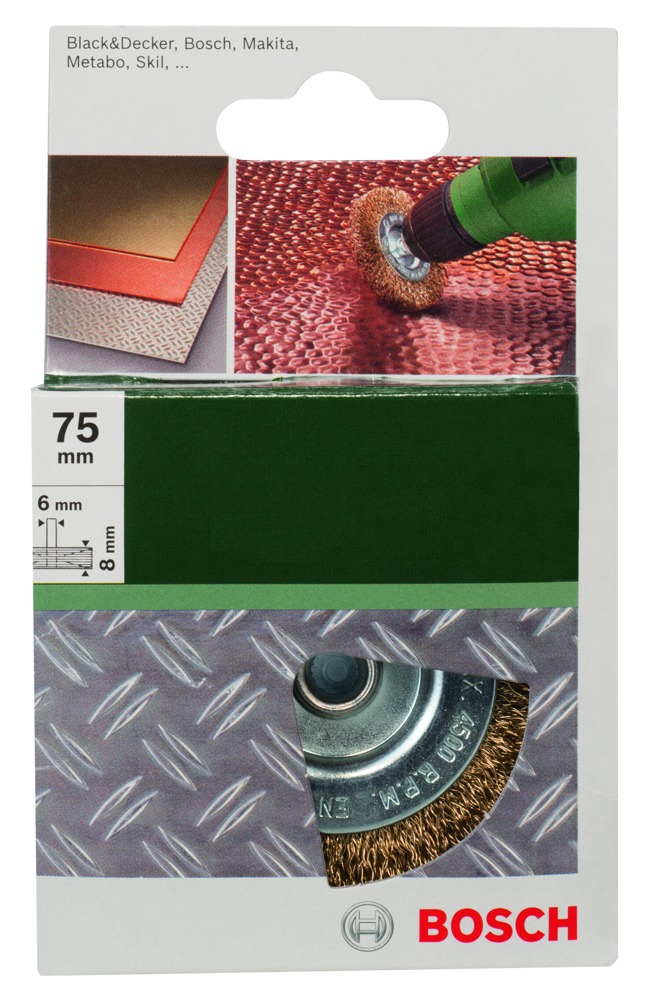 Szczotki tarczowe do wiertarek – drut falisty, mosiądzowany, 75 mm D = 75 mm, szerokość = 8 mm