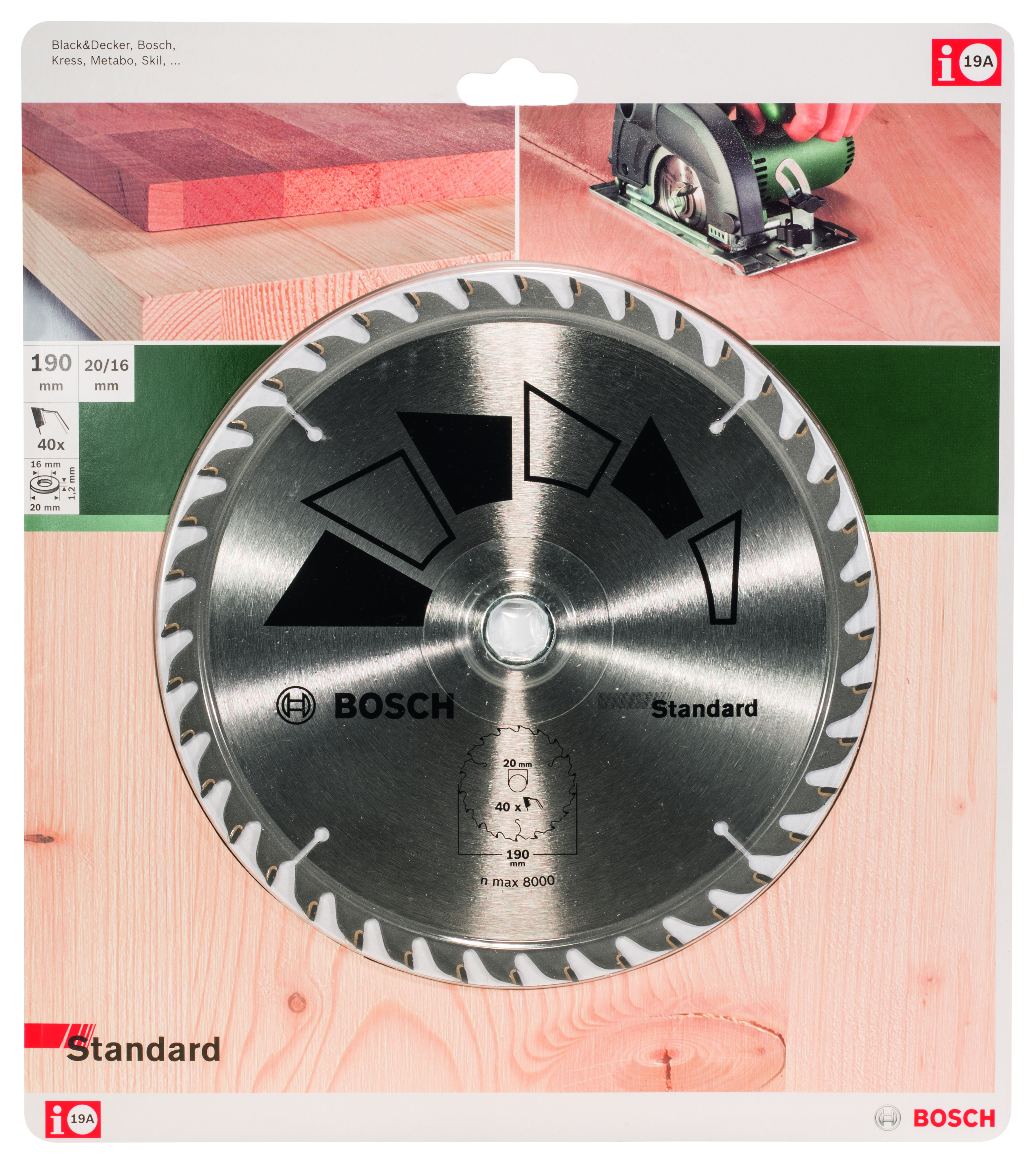 Tarcza pilarska STANDARD D = 190 mm, otwór = 20 mm, Z = 40
