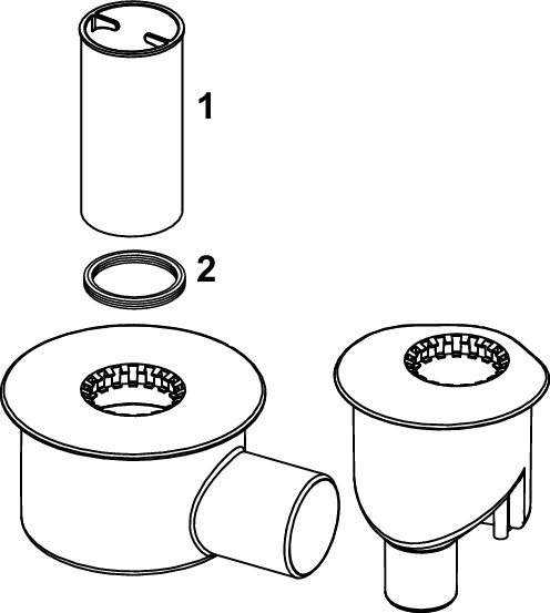 Kolano odpływowe do rynny prysznicowej TECEdrainline do montażu na korpusie rynny, odpływ obrotowy 360°, do przyłączenia bocznego do przewodu kanalizacyjnego DN 70, z wyjmowaną rurką spiętrzającą syfonu