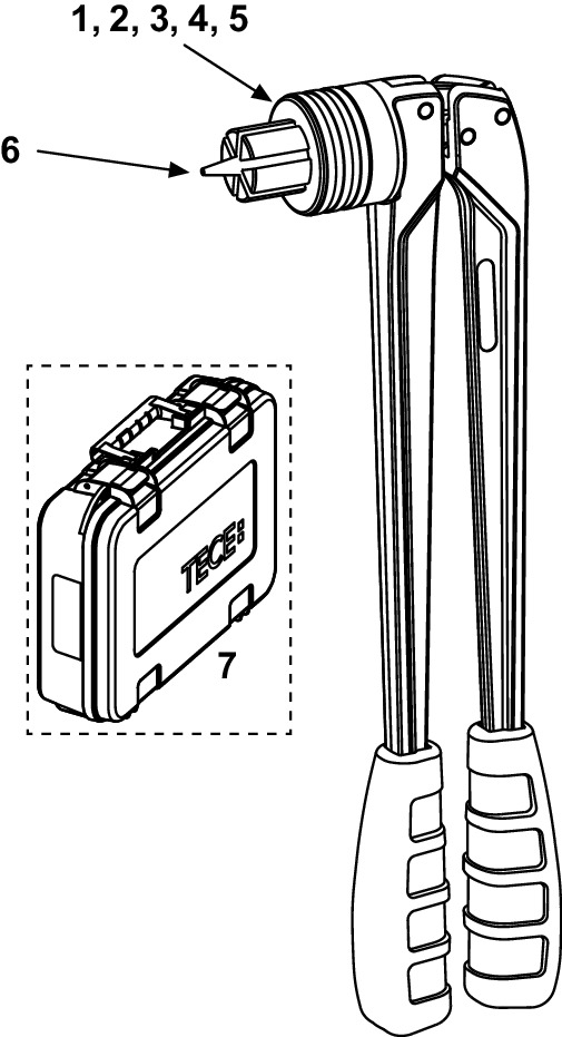 TECEflex ręczne narzędzie kalibrujące typu RAZ-V w zakresie średnic 16 - 32 mm.