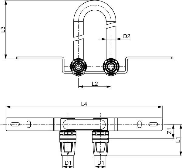 Garnitur montażowy do grzejników z połączeniem wtykowym. Do kompaktowego grzejnika z wbudowanym zaworem, podłączonego do ściany, do instalacji grzewczych. Rurka miedziana 15 mm, niklowana.