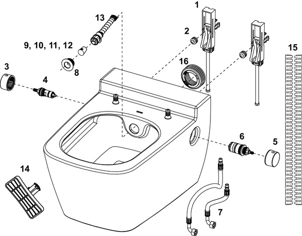 Bezkołnierzowa ceramika WC ze zintegrowana funkcją myjącą do komfortowego utrzymania higieny intymnej. Funkcja myjąca działa bez elektryczności poprzez bezpośrednie podłączenie wody zimnej i ciepłej.